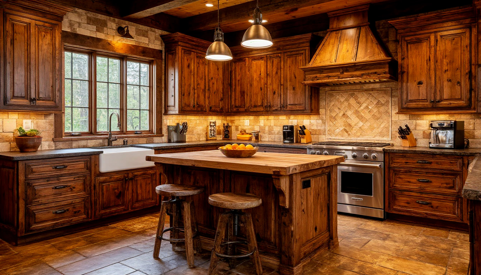 Свет играет на поверхности дерева по-разному. Утром кухня кажется янтарной, днём — золотистой, а вечером, при ламповом свете, — почти шоколадной. Это живое пространство, которое меняется вместе с освещением и настроением. Оно никогда не бывает одинаковым, и в этом — его магия.