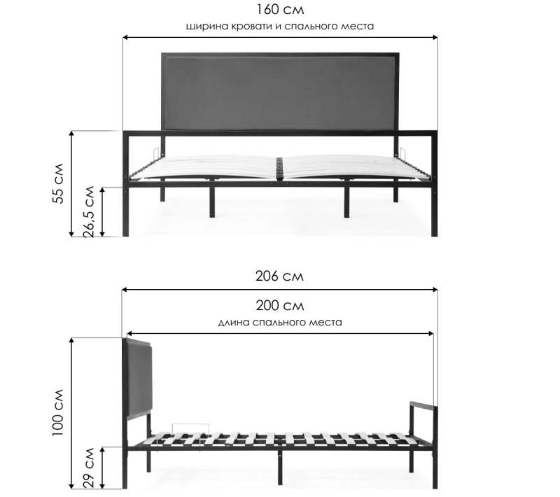 Кровать Эгерт 160х200 черный / antracite (160x206x100).
