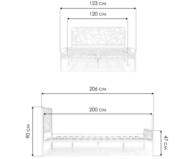 Длина кровати: 206 см.