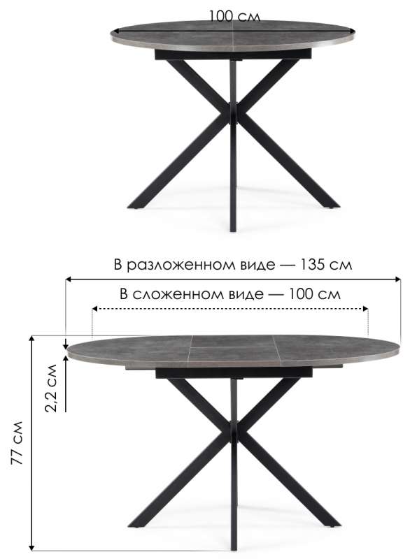 Толщина столешницы: 2,2 см.