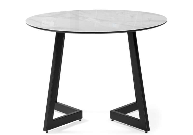 Стол стеклянный Алингсос 100(140)х100х76 белый мрамор / черный (100x76).