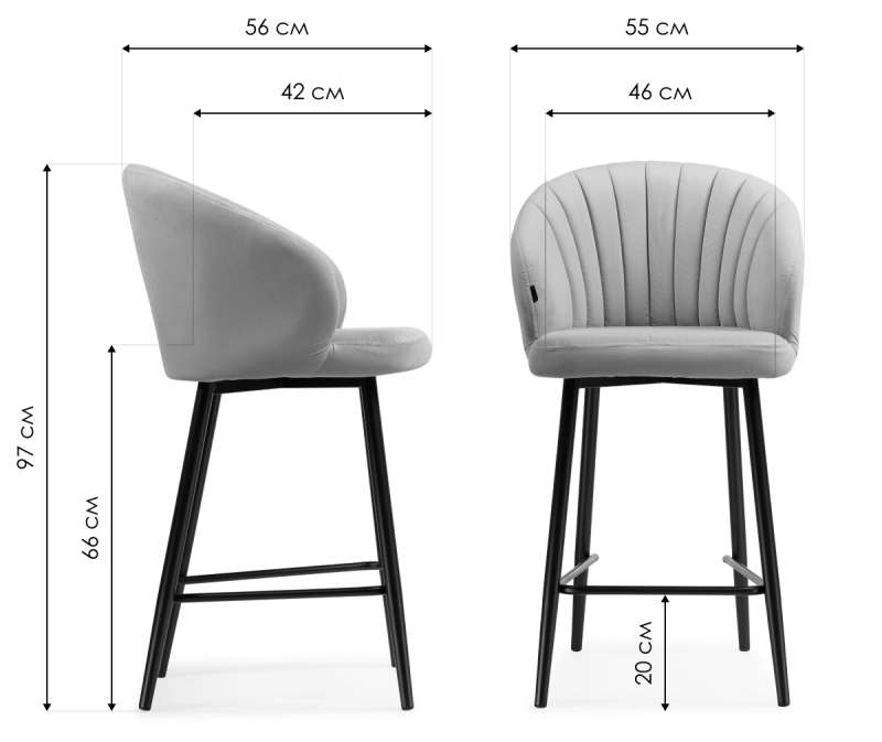 Высота спинки: 34 см. Высота подножки: 20 см